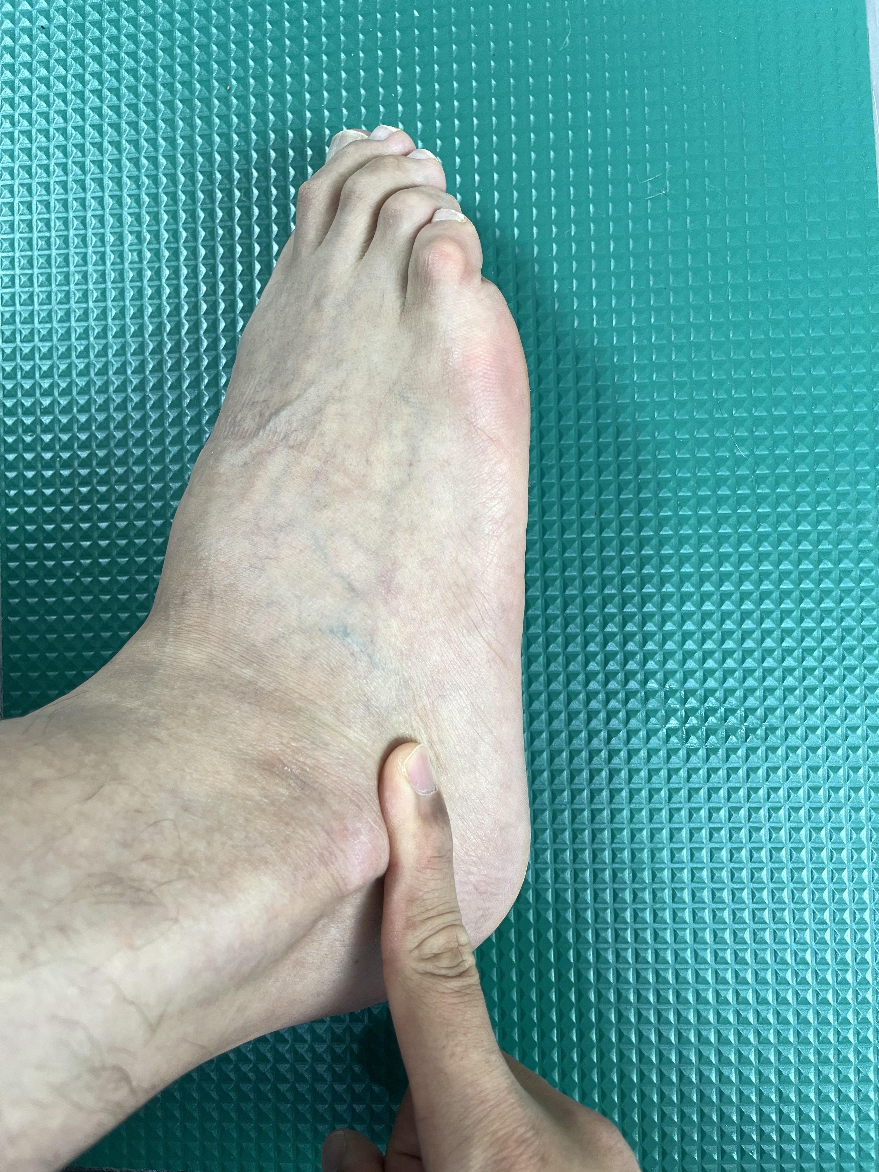 환자분의 통증을 느끼는 부위를 살펴보면 딱 복숭아뼈 바로 아래에 통증을 느끼십니다.
